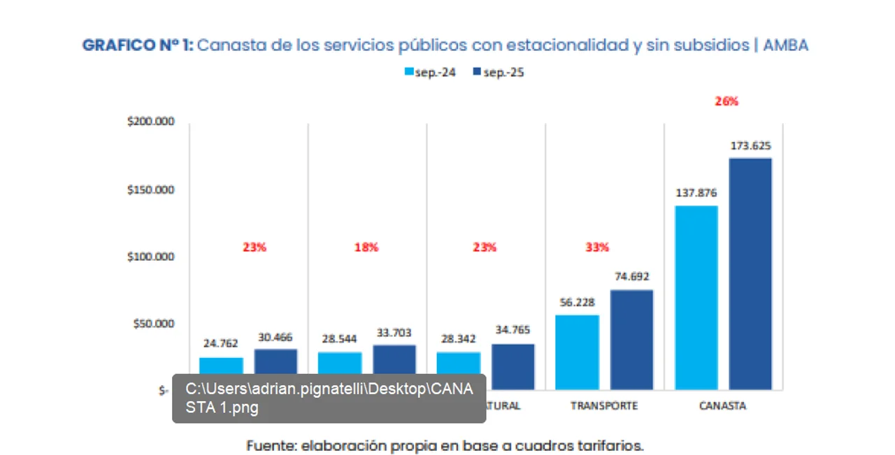 A pesar de haber bajado 7,7% mensual frente a agosto, la canasta de servicios públicos del Área Metropolitana de Buenos Aires (AMBA) aumentó tres veces más que la inflación en menos de dos años, desde diciembre de 2023 hasta septiembre de 2025, según indicó el reporte mensual elaborado por el Observatorio de Tarifas y Subsidios del IIEP, dependiente de la Facultad de Ciencias Económicas de la UBA.